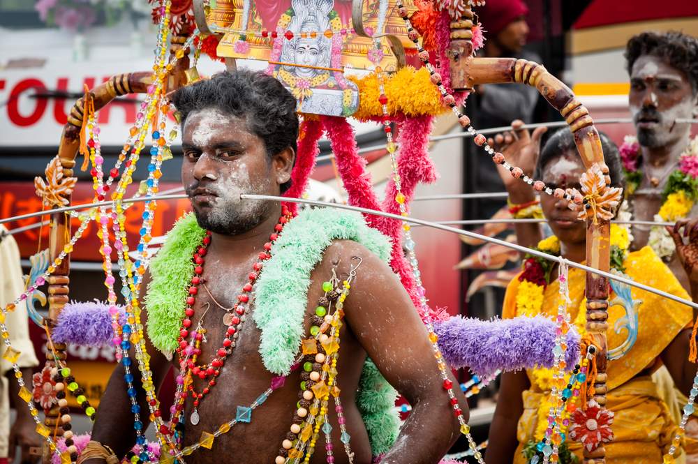 The three-day festival attracts over one million participants each in Malaysia and Singapore. Tamil Hindus celebrate Lord Murugan's birthday and his victory over the demon Soorapadman. Kavadi - ornamental wooden frames decorated with flowers and peacock feathers - are carried as acts of devotion. Preparation begins 48 days before the festival with fasting, vegetarianism, and cold-water bathing. The ritual symbolizes personal purification and overcoming life's burdens.