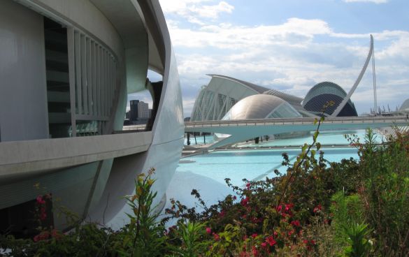 There to keep an eye on you – since 1998 – is the Hemisferic, an enormous eye resting in a pool, opening and closing. It’s the eye of knowledge, a knowledge presented by means of a large scale IMAX cinema and digital projections in the case of astronomy and entertainment. If all you want is a walk, the Umbracle is prepared to make it tree-lined and surround you with plants indigenous to this part of Spain, while you enjoy the arches of the building and views of Science City, also its high-rise neighbors at a respectable distance.