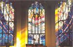 There are a number of stained glass windows, but the most dramatic is the large one seen straight ahead on entering the nave, the “Chapel of the New Jerusalem” window, designed by a Londoner. With the light shining behind it, it is simply awe-inspiring. Be sure to search out the stone nest and carving of a bird on the “Robin Pillar”. This sculpture is a tribute to a bird that built its nest near the capital of one of the pillars. All building operations halted until the eggs were hatched.