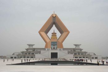The highlight of this expansion is the massive stupa that seems to loom over the area. Called Palms Together Dagoba, 合十舍利塔, it reaches almost 500 feet high, and is surrounded by what seems to be a palace-worth of Buddhist imagery.