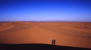 Our goal was to reach a cluster of small sand dunes by dusk, about four hours walk away, where we would spend the night next to a well. As Brahim explained, the direction of our trek depended on where we could find water for the camels. They can go up to a week without drinking, but are happier and work harder if they can drink at least every two days. In this part of the world, locals tell stories about how green strips of irrigated land once extended miles into the desert. But one generation later the ground is now truly parched. It hasn’t rained here for at least six years and wells are further apart than ever before. “We hope it will rain this year, ensha’llah,” one elderly man said, looking towards the sky. Ensha’llah means “God willing” and it was a word I would hear at the end of nearly every sentence in Morocco.