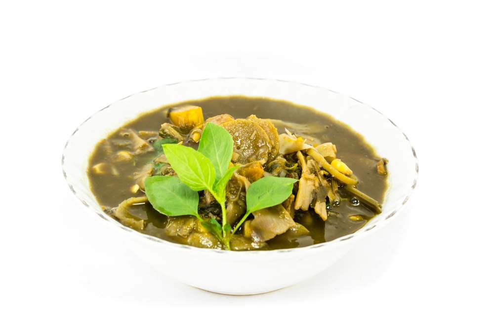 Originating from the Hmong of Luang Prabang, oh lam is a stew made mainly from vegetables: beans, eggplants, gourds, black mushrooms, then seasoned with lemongrass, chili, and coriander and finally thickened with sticky rice. Ho or Oh is loosely translated as “to put in”, which implies that this stew is a hodge-podge of whatever ingredients are on hand. But the key ingredient is sa kan, a bitter root herb.
