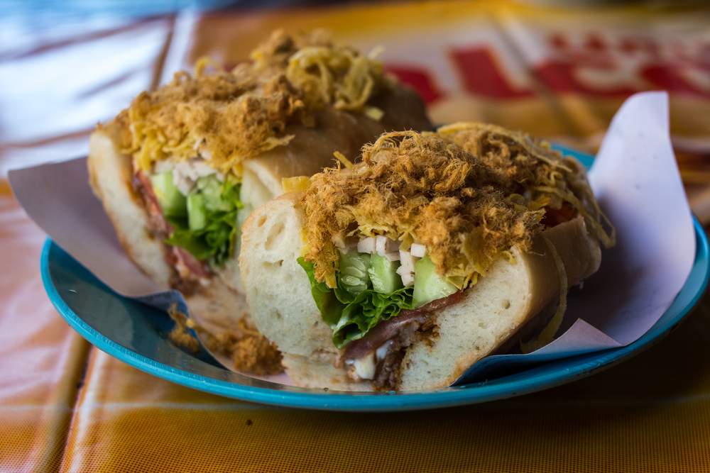 Laos was part of French Indochina for about 60 years, so it’s not surprising to see vestiges of colonial France; there are the faded yellow buildings, signage in French, and of course, the food. The Lao have adopted the baguette, and khao jie pate or the Lao Sandwich, stuffed with pork pate, assorted greens and jeow bong (chili paste), is sold everywhere as a quick snack.