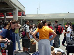 The bus driver must have thought that you would appreciate a tour around the airport, and manages to take twenty minutes to get you to the building. The pushing starts again.