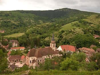 Hotels in Alsace are surprisingly affordable compared to hotels in larger cities. I’ve stayed in several of the villages – Riquewihr, Ribeauvillé, Ammerschwihr, and my favorite, Eguisheim. As you drive into this wheel-like Roman village from the south, you’ll end up on the main street quickly. The Hostellerie Du Pape, immediately on your right, offers comfortable rooms and the best sauerkraut garnished with potatoes and pork in its many varieties (choucroute garni) in town. A few years ago, in Eguisheim with a friend, we stayed in this hotel. Our friend’s room was just a few feet from the beautiful terrace where we dined (and wined) that evening—which was very fortunate for him.