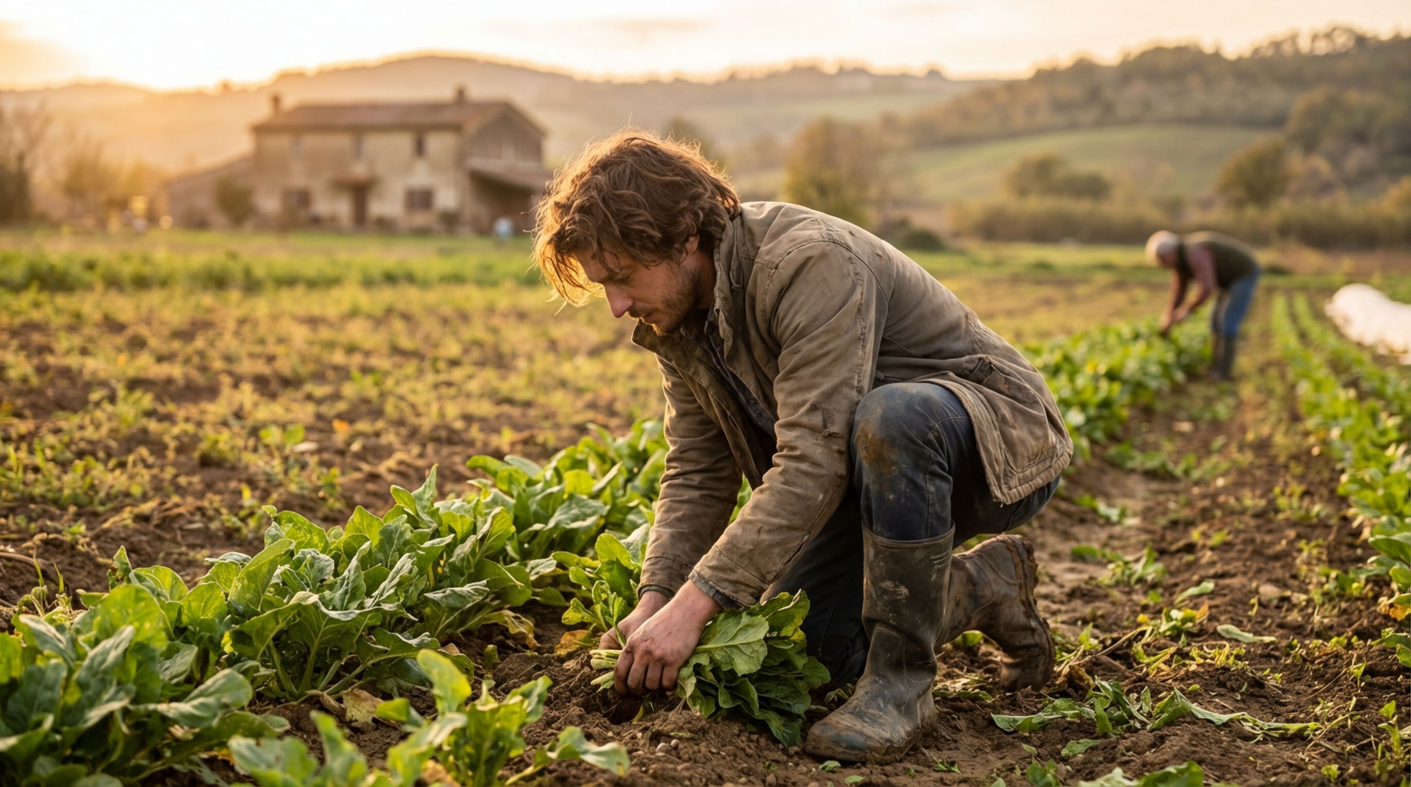 Farm work is often manual labor. Bending, lifting, carrying, digging - physical work.